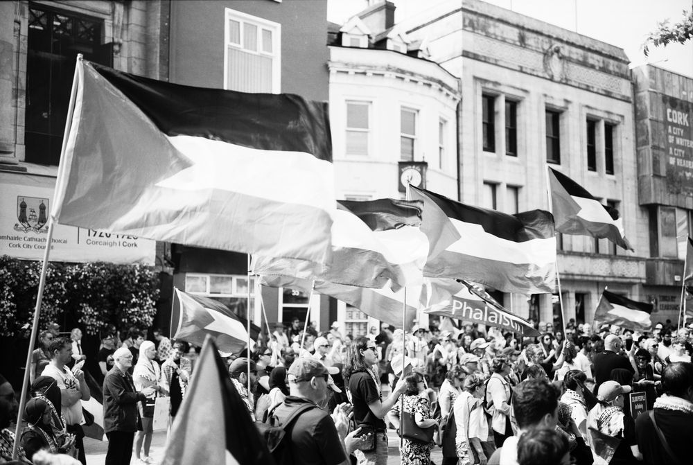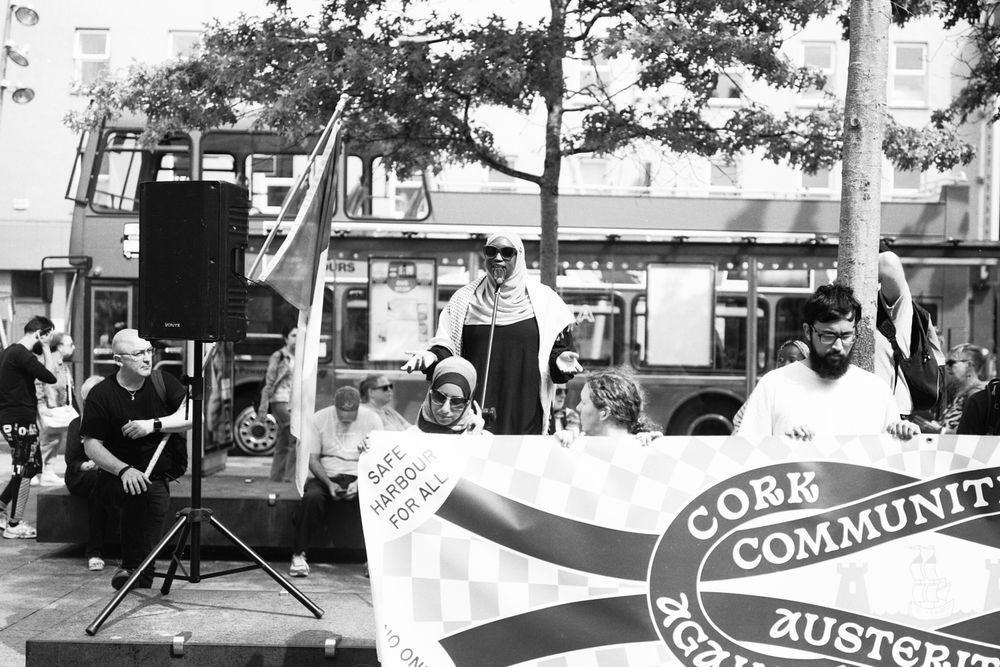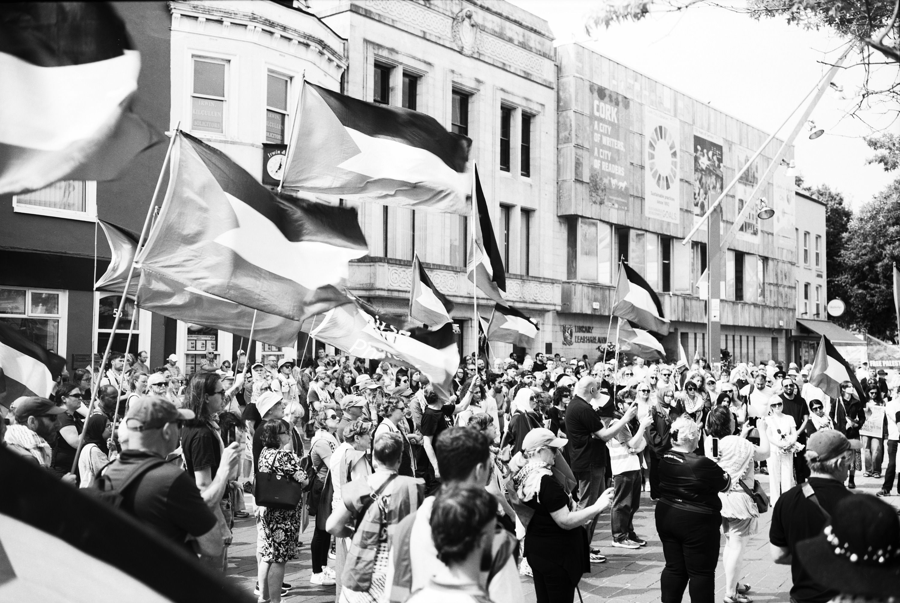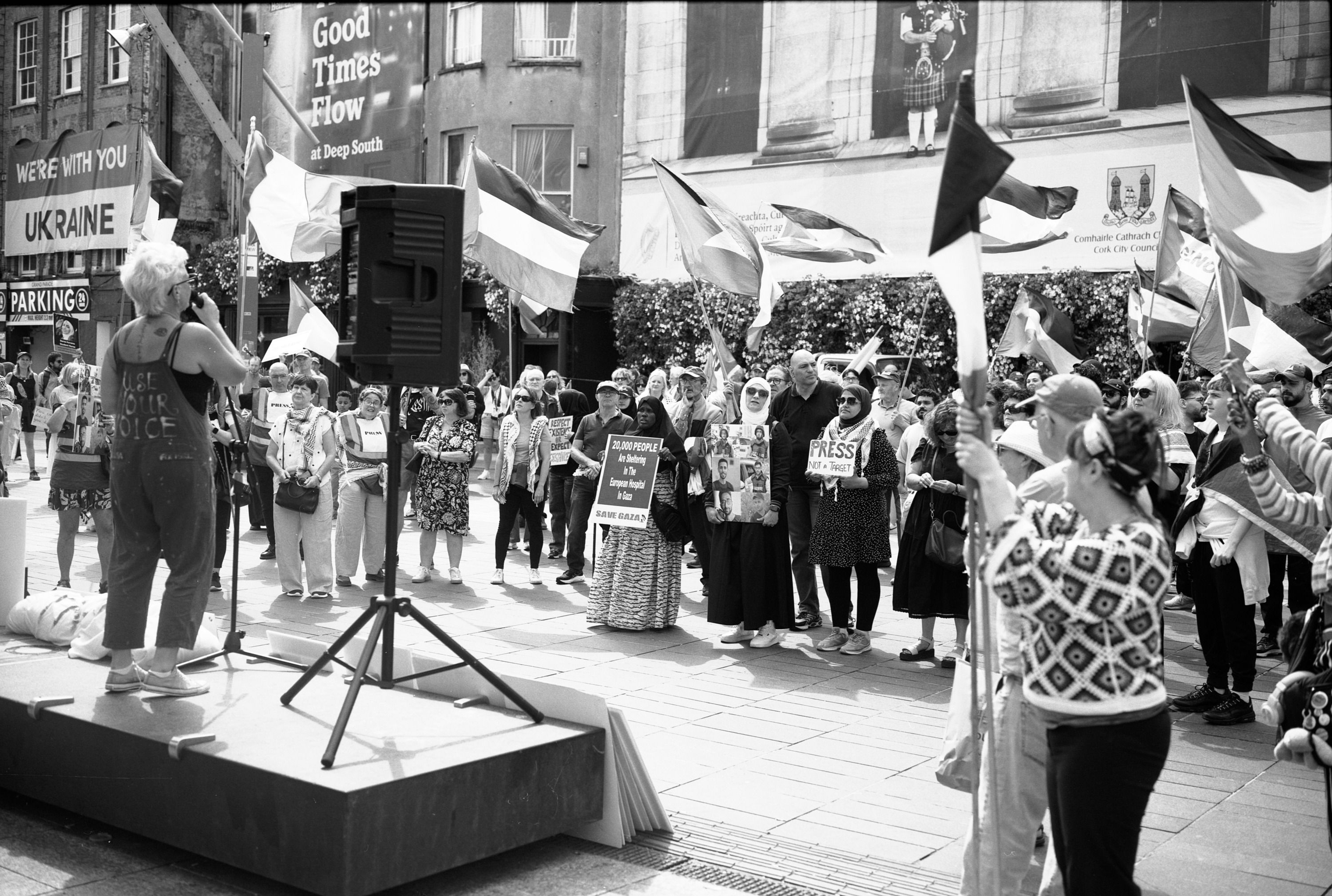 Palestine protest, and anti-racism protest in response to a number of racist attacks in Ireland, on 16/8/2025 in Cork.